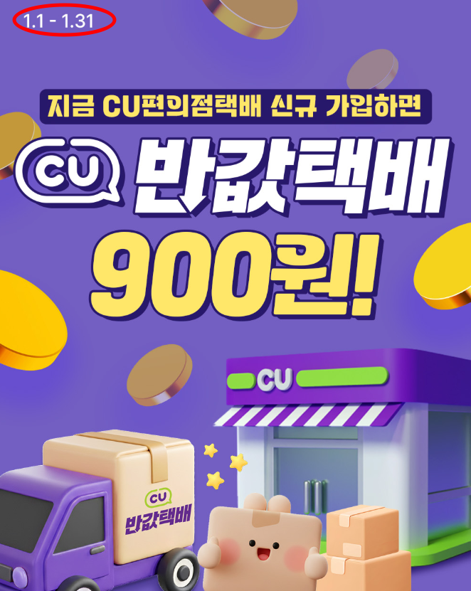 현재 CU 편의점에서는 반값택배 신규 가입자 대상 900원 이벤트가 진행 중입니다.
